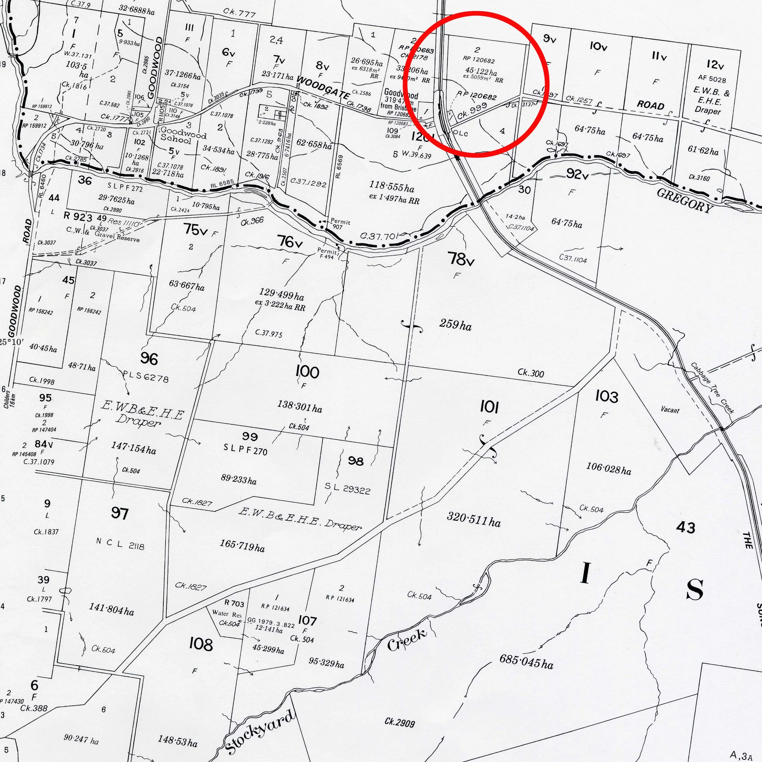 Cadastral Map with an individual cadastral plan circled. Credit: ICSM